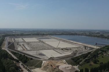 180.000 m³ aan steenmateriaal krijgt een tweede leven. De stenen worden opnieuw gebruikt aan de oevers van het spaarbekken, waar ze het onderliggend materiaal op zijn plaats houden en de impact van golfslag beperken. Momenteel werd al 75% van de stenen afgegraven. Daarna reinigen we het steenmateriaal ter plaatse via een grote zeefinstallatie. We hergebruiken alle stenen en ze krijgen na de behandeling terug een plaats op de oever van het spaarbekken. Op deze manier vermijden we een groot aantal transporten. Een duurzame oplossing die ook de hinder voor omwonenden beperkt.