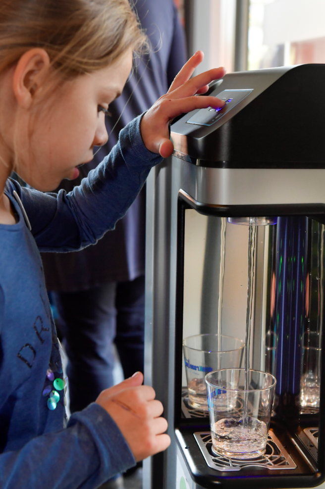 Cindy Vanderstraeten, projectleider drinkwatertappunten: ‘We bieden onze gemeenten de keuze uit 3 types: een tafelmodel, een vrijstaand model en een wandmodel. Gemeenten kiezen zelf waar ze deze tappunten plaatsen, bij voorkeur op plaatsen waar veel passage is uiteraard. We voorzien ook een onderhoudscontract voor herstelling, vervanging en controle op de werking en de waterkwaliteit. Na selectie van de leverancier, starten we de uitrol op in het voorjaar van 2019. Vooraleer de tappunten geplaatst worden, zal een medewerker van De Watergroep een plaatsbezoek brengen om ervoor te zorgen dat alle randvoorwaarden voor een goede drinkwaterkwaliteit vervuld zijn. Om onze gemeenten nog meer te stimuleren om te kiezen voor kraantjeswater, krijgen gemeenten die het charter drinKraantjeswater tekenen (of al ondertekenden) voorrang bij de plaatsing.'